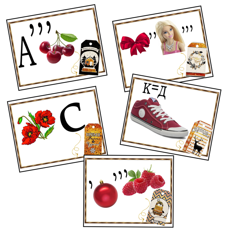 Еще придумала в этом году чтобы дети разгадали ребусы и таким образом распределили подарки по адресатам, вот такие карточки приготовила: