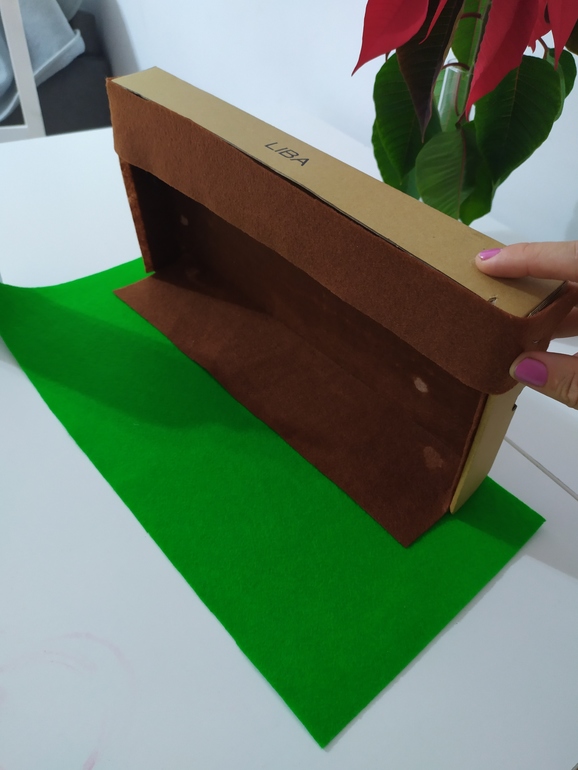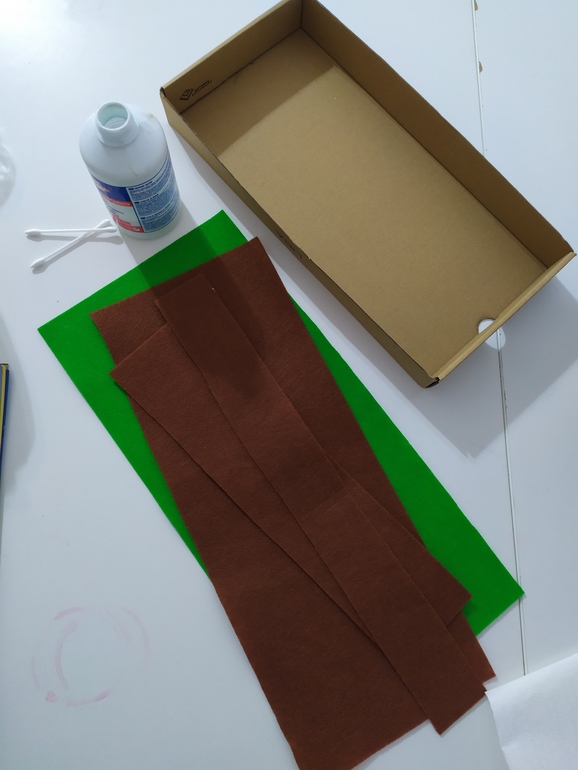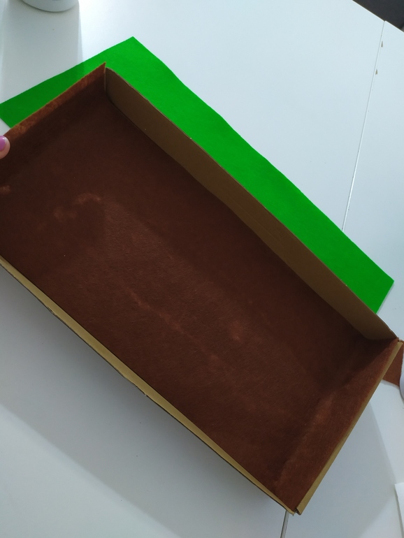 Натягиваем фетр на коробку, закрепляем (я степлером и клеем)