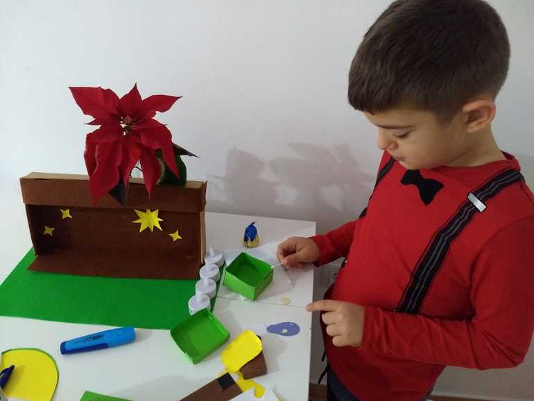 Вот такая сцена для рождества получилась 30 ноября. С тех пор каждое утро сын находит здесь коробочку или пакетик с запчастями нового персонажа, которого нужно склеить. Ну и с конфеткой, разумеется)