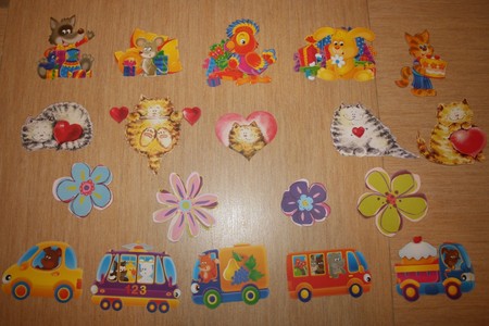 1. Наклейки на стены (машинки, стилизованные цветки, мишки с сердечкаи), которые потом легко отлепляются.