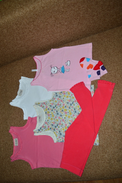 2.Все в отличном состоянии, без пятен дыр и т.д.: три маечки некст, лосинки некст, маечка с девочкой маракита- 350р.