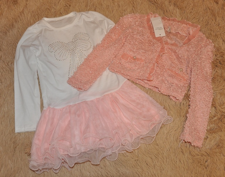 комплект примерно на рост 96-98, сделаю замеры по запросу. моей узковат жакетик при росте 102 см. новый 500 руб