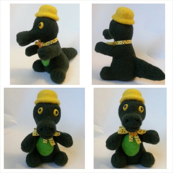 Экоигрушка крокодил Гена выполнена из экологически чистых итальянских шерстяных волокон вручную, техника сухого валяния.