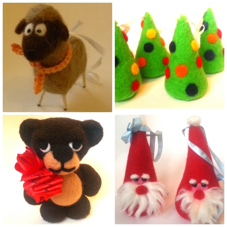 наборы елочных экоигрушек ручной работы из экологически чистого войлока.