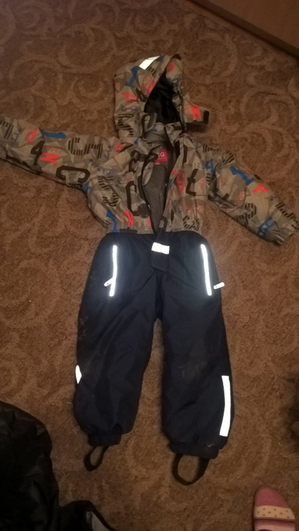 комбез на весну осень. очень мне нравился :(( но у нас дома ремонт, и так вышло что оставила его в коридоре и у нас там его нечайно испачкали монтажной пеной. не отмывается. Хотя может в какой нибудь хим чистке и отмоют, мы не пробовали, т.к уже переросли его. испачканую штанину видно на фото. рост 104 ( мы да 110 носили)