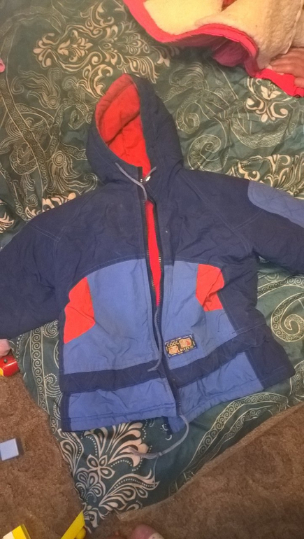 Куртка на мальчика на рост 104.(после двух деток) носили активно, но нигде не рваная. Для горок в самый раз. На холодную осень или весну. Надо постирать