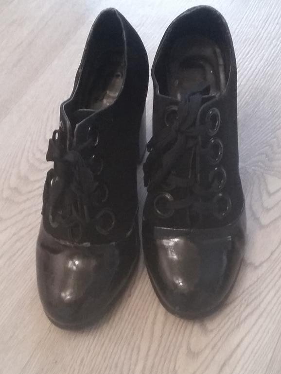 10. Ботинки ношенные. Есть трещенки, на качество не влияют, чисто визуальный минус. Эквивалент 200. Сверху аля бархат. Каблук устойчивый. Размер 39.