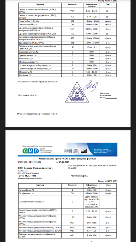 Сыну 9,5 месяцев, месяц назад согласно анализу крови была выявлена ЖДА. За 2 месяца, с момента последнего ОАК гемоглобин упал с 118 до 98. Наш педиатр назначила Мальтофер по 20 капель и контроль через месяц (вес ребенка 11,5кг). Сейчас сдали кровь, гемоглобин поднялся до 106, до но нижней границы нормы не дотягивает.