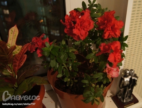 Другие растенияРешила прочитать тут, на ББ, про азалии... просто так... листья у моей мне не нравятся, слишком уж дохленькие какие-то, но зато цветет 2 раза в год стабильно уже как 4 года. И только сейчас узнала, что это оказывается ОЧЕНЬ прихотливый цветок! А я тут на днях думала: "Дай-ка пообрезаю все ветки, оставлю только с несколькими листочками, авось "шевелюра" моего цветка попышнее станет". Теперь вот, зная, что цветок этот капризный, боюсь) за 4 года свою азалию ничем не удобряла, не поливала подкисленной водой, да и почва там обычная для цветущих растений. Пересаживала всего 1 раз, особо не морочась, просто взяла с землей перевалила в новый горшок, побольше прежнего, и добавила землицы. Все. Что же ее заставляет у меня жить, да еще и цвести 2 раза в год, ума теперь не приложу)) Интересно, если все-таки обрезать веточки, сделать покороче, лучше ей станет? а то она у меня все дает и дает новые вверх листочки, а внизу старые подсыхают (но не опадают). Может как обрежу, глядишь и внизу станет давать новые ветки...