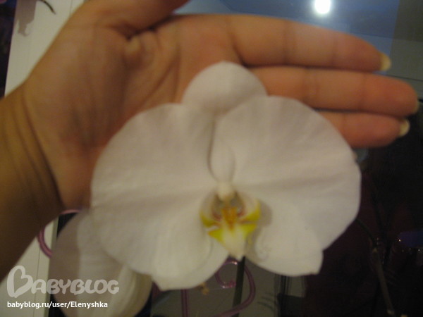 ОрхидеиПокупали в прошлом году обычную белую орхидею... стандартного размера. А у нас в доме расцвела она вот такими вот гигантскими цветами