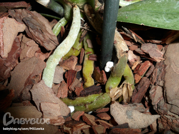 ОрхидеиЗабрала у мамы свою орхидею, на одной ветке выросла детка наверное но корней нету, что можно сделать что бы они выросли? Второй воопрос начали корни темнеть иза чего это может быть, может мама ее залила?И №3 выросла детка снизу фотки нету сел фотик но на ней 2 корешка один 1, 5 см воторой гдето 4 когда ее можно отсадить будет?ПЕрвая фото это наверное детка на ветке , вторая корни а на третей видно детку и маленький корешок :)Орхидея уже отцвела)