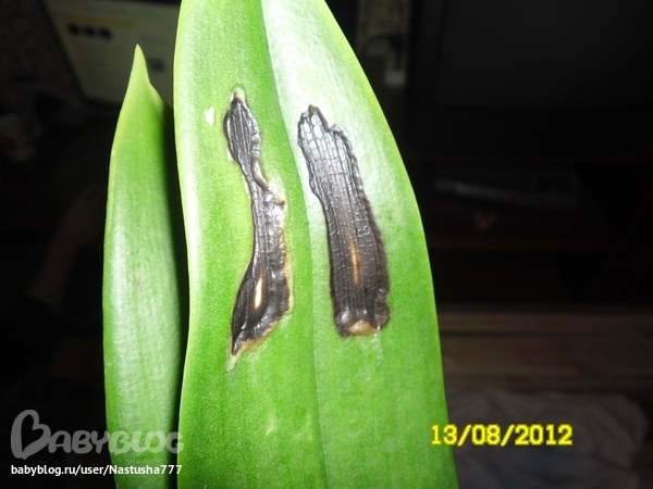 но вот что у него с листком..... Это ожог или грибок?