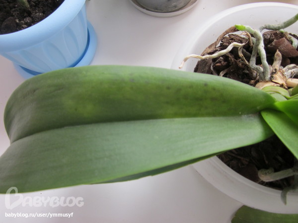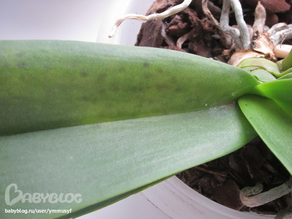 SOS! Помогите цветику!1) что-то я засомневалась на счет орхи, думала что у нее ожег,а теперь сомневаюсь не трипсы ли это? или еще чего((((