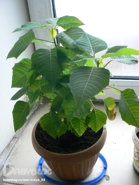 Пуансеттия. Муж подарил в прошлом году. Цветет красными листьями.