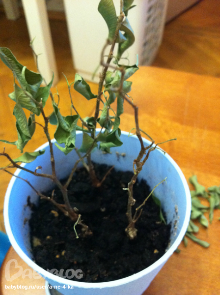 А я на свой забила. Он стоял весь в листопаде. Новые листочки появлялись и сразу засыхали, а потом ничего такрй стал.смешной конечно. Три листочка здесь, три там))))