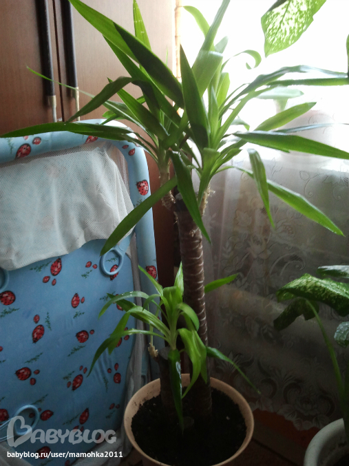 Сансевиерия такая была. мне ее отдали!И на окне такая же была и на подставке(переставила я ее)Но сейчас обратно на окно поставлю!А юкку,да...ей еще жарко я думаю,около трубы стоит!но у нас просто больше некуда ставить. трубы по всему периметру комнат. и стоит возле окна. на окно уж точно ее не поставить))))Мне муж подарил юкку на годовщину свадьбы!Жалко ее мне)