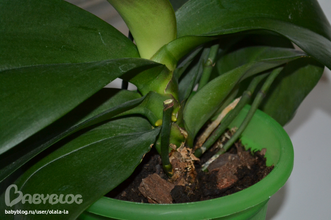 У меня вот на маленькой растюхе тоже есть один такой пупсик,и лезет из пазухи нижнего листа(лист засох)прямо в верх.Я вот наблюдаю,все таки наверно корень,хотя сначало обрадовалась,думала цветонос.Это корни у вас(((((