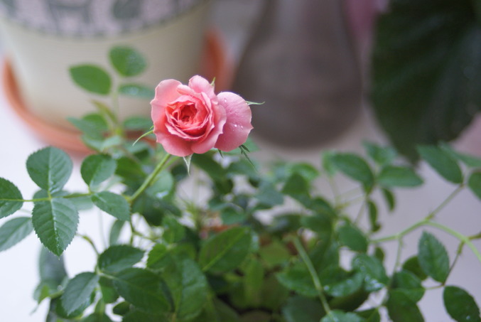 Розыкупила я две розочки в середине января.это была вторая попытка вырастить розу.(первые три малышки не прижились). купила одну маленькуи и одну по больше.обрезала цветы, пересадила, в начале розы полысели слегка а потом стали активно расти. в особенности малышка. в итоге через 2 месяца, в начале марта малышка стала набирать бутон.