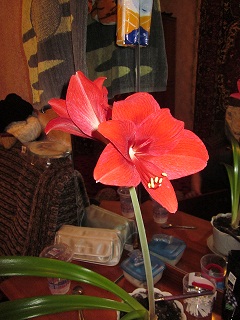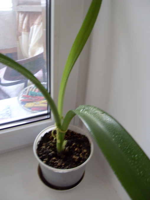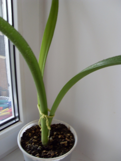 На гипеаструм похоже, ну или амарилис))) только вот чтоб он зацвел-горшок должен быть в разы меньше-от луковицы до края горшка должно быть всего см 2-4. да и сама луковица должна торчать из земли как минимум на 1/4 часть