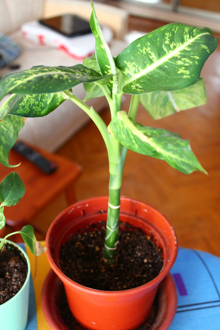 диффенбахия пятнистая, нужен хороший уход, на нижних листиках повреждения, отдам с горшком