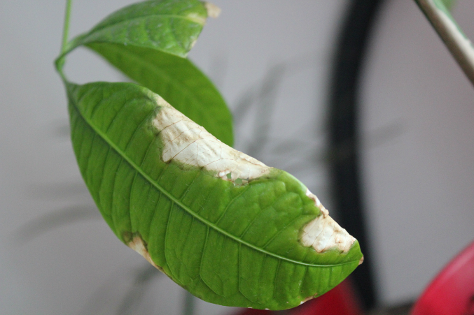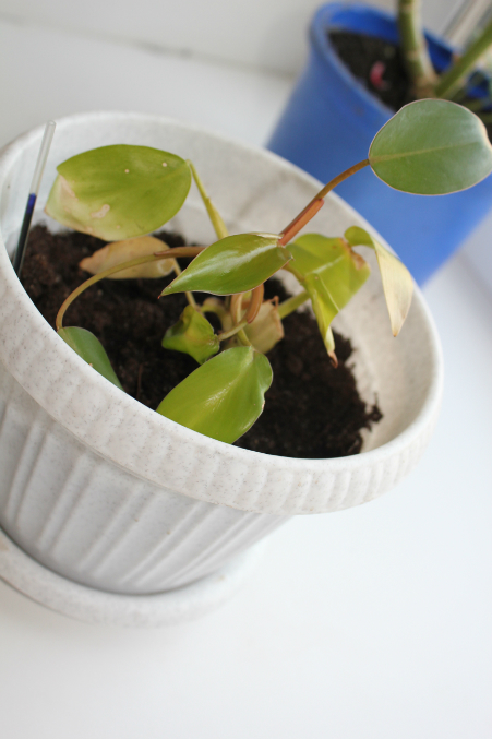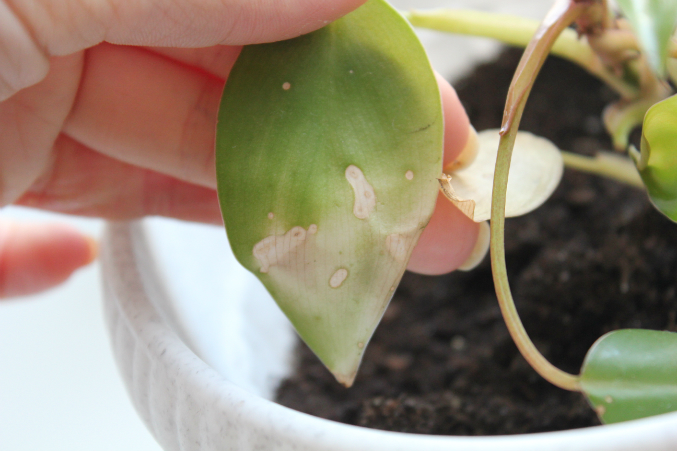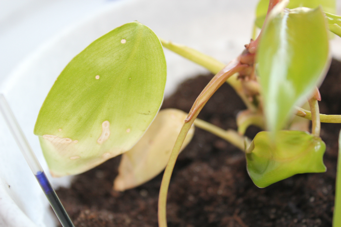 Еще вот что есть, оторвала у мамы, посадила, новые листочки выросли, но на некоторый пятна, у мамы он в тени, на кухни в углу, у меня стоял на солнечной стороне, солнце могло сжечь?