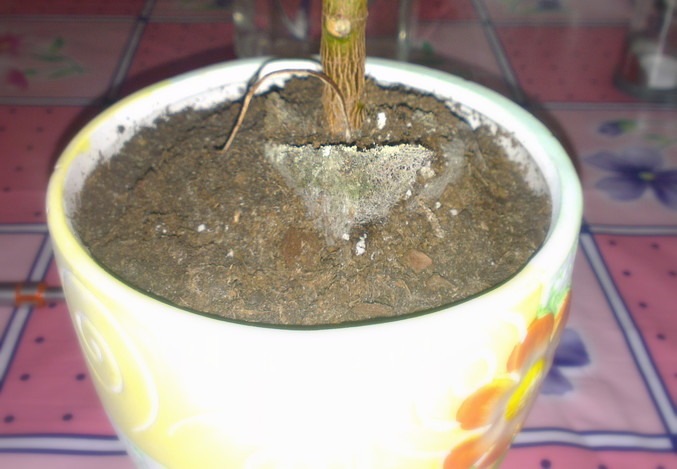 SOS! Помогите цветику!мама купила в оби, подарила мне. я его пересадила, сделала дренаж, но через полтора месяца пошло на листочке..рекомендации по уходу соблюдаю. в чем проблема?? в горшке часть цветка в тряпочке, я не смогла ее отделить, когда пересаживала.