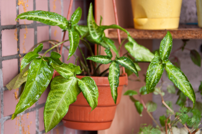 сингониум. когдато он плёлся у меня по стенам в 3х горшках, создавая пышную зелень, пока не подхватил какуюто бяку, которая стала перебегать на все растишки. это обновлённый.