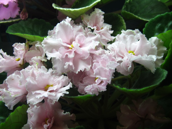 3. Свадебный букет (Морев). Обожаю белые фиалки!!! У меня их 3 сорта. Arctic Frost уже третий раз цветет (я его деткой покупала), Raphsody in White еще маленькая, а это, действительно, свадебный букет: компактная шапочка цветов в обрамлении правильной кругленькой розетки. Хоть бери в руки горшочек - и в ЗАГС!!!