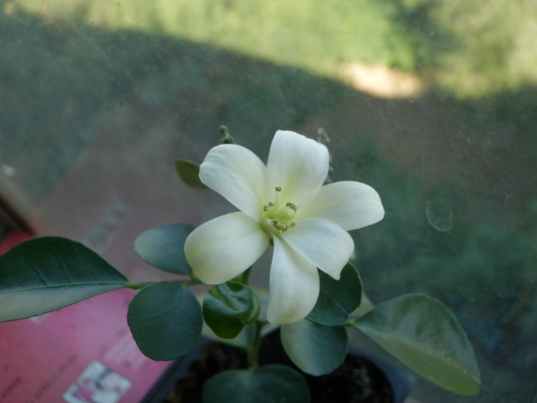 Вторая - муррайя. Осчастливила буквально вчера вечером)) Я зашла на балкон, а к привычному аромату цветов сансеверии добавился еще какой-то и сразу поняла, что она, потому как бутон был большим)