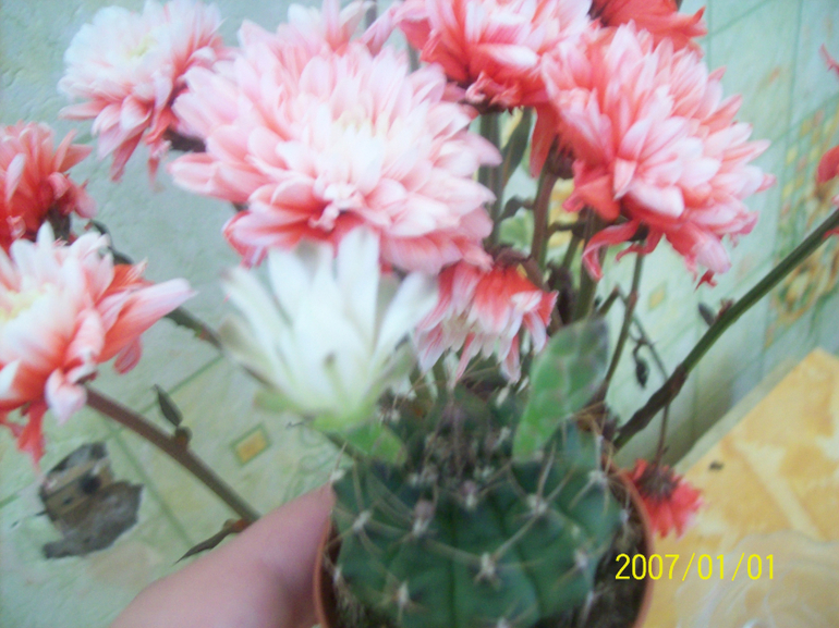 Кактусы/суккулентыВ продолжении моего вчерашнего поста, про кактус. Он расцвел, как и предполо=агали многие он беленький, кончики лепестков коричневые)