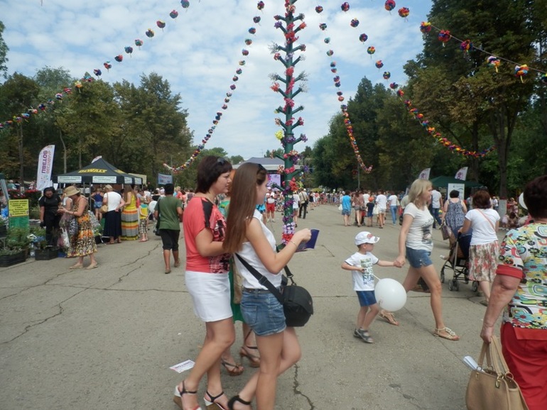 Поэтому, не смотря на 40 градусную жару, я пустилась в путь к безудержному веселью) Фестиваль предлагает нам насладится различными яркими красками садовых и комнатных растений, различные творения талантливых мастеров: подделки, игрушки, композиции из сухоцветов и живых цветов, концерт, конкурсы для детей. В общем, много музыки, цветов и людей.