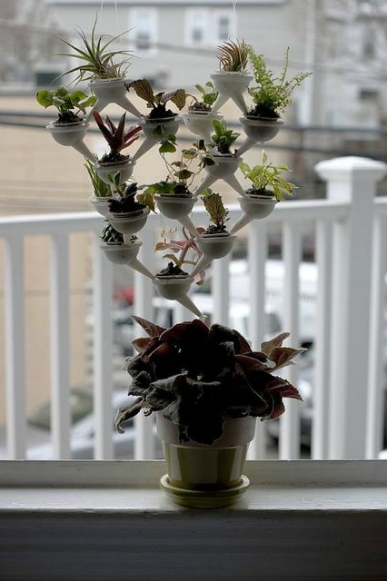 9. Удачное решение для кактусят) Вся конструкция крепится на леске, как бы подвешивается, а излишки воды стекают
