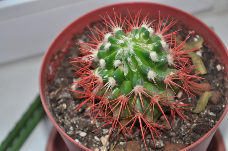 Скорее всего будет ряд без колючек. Пока маленький, заметно будет, вырастет, уже не очень глаза малолитражки будет. Правда, лет через 20)))) Эти кактусы тугорослые.