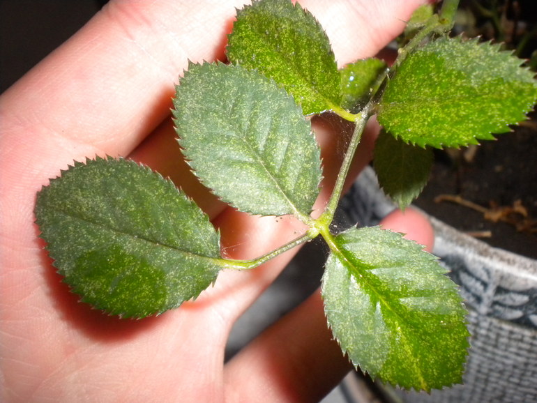 Только сейчас заметила паутинного клеща на вашей розе. Обмойте сильной струей душа и опрыскайте инсектицидом