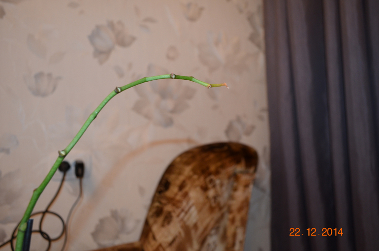 Ну листья то нормальные,моя когда умирала у неё листья пожелтели и отвалились.А палки с цветоносами я отрезала.Когда отрезала на ней корни новые полезли.Эти цветоносы так и будут загибаться,потом другие вырастут))А щас она у тебя все силы в эти цветоносы старые пускает))