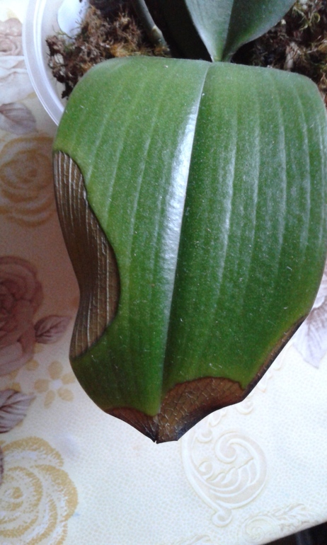 у меня на одной тоже такой появился еще летом, я поняла, что солнышком обожгло. Последите, может в какое-то время дня на нее попадают яркие лучи