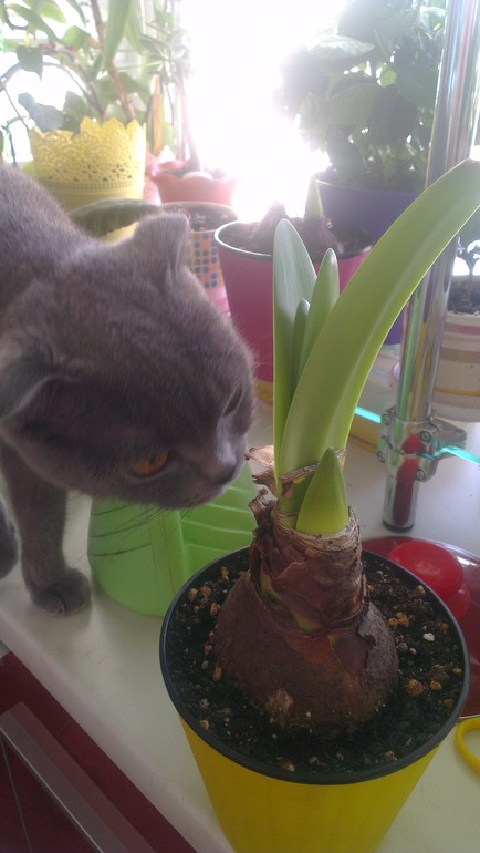 ХвастушкиВ очередной раз хочу показать вам своего любимца.это мой первый гиппеаструм,купила я его около месяца назад.и вот с первых дней дома он пошел в рост))))где-то дней 5 назад он выпустил стрелку)))))я безумно рада!