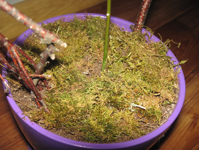 Так вот, для своих Пассифлорок я решила не покупать опоры (или как там называются эти штуки, по которым они вьются), а приспособила веточку, да покрасивее нашла)))))) По моему красиво будет. Их можно ставить по разному, можно разлапистую найти, чтоб как дерево получилось, например.