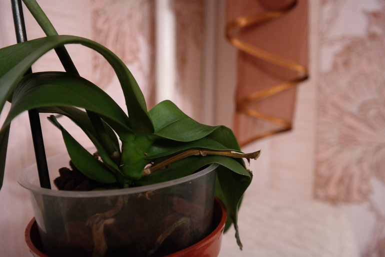 вот еще один цветонос.стоит ли обрезать по спящую почку на последнем фото, либо стоит удалить на три сп.почки выше по гл.цветоносу?поправьте, если что не так сформулировала.Листья поникшие и вялые, мягкие,потеряли тургор