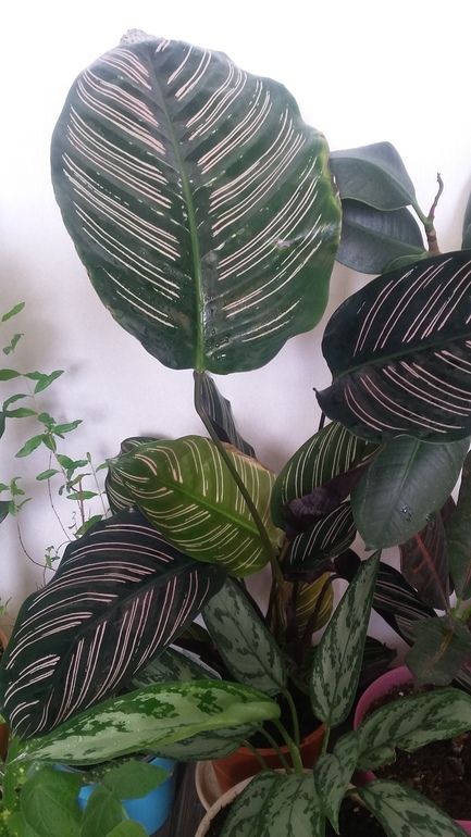 И калатея такая вот - тоже давно на них смотрю) а тут тоже одна притаилась внутри стилажей - еле раскопала). И вообще я думала я оттуда не уйду)) 5 кругов вокруг этого закутка сделала-муж еле увел) папоротник еще хотела. Домой приехала - вердикт - надо вешать еще полку))))места просто нет. все хотят света....