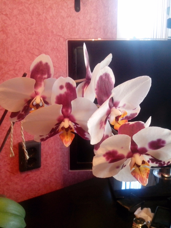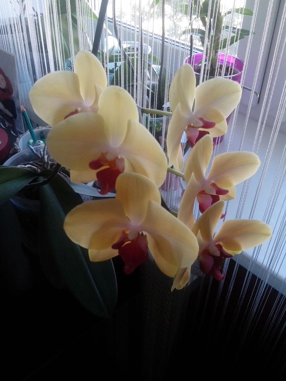 ой у меня тоже желтенькая с розовым есть. я так о ней мечтала, но купить дорого, а тут соседка отдала замученную без цветоносов . Я ее выходила и она преподнесла подарок