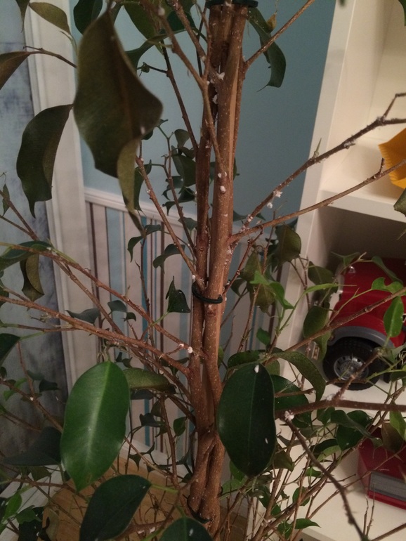 это мучнистый червец..гад такой,задолбал меня,сгубил два мирта,так и не смогла ничего сделать,после этого боюсь заводить мирт,хотя очень хочется.....я и корни промывала и замачивала в отраве и веточки замачивала и с лупой сидела снимала этих тварей ватной палочкой смоченой в спирте,и обрезала и под пакет сажала...ничего не помогло...а тут еще у вас размеры такие огого...с лупой не посидишь.водой его просто наверно не смоешь,ну по крайней мере не всех,только химия,только хардкор)))к тому же они еще и в земле могут сидеть и корни посасывать...хотя они больше к веточкам присасываются и соки все вытягивают,поэтому только травить,чтобы они вместе с соком и отраву пили...смотрю уже и так листвы прилично опало и много веточек сухих и листочков новых практически нет..так и у меня было,они гады понежнее да помоложе выбирают,а это как раз на кончиках веточек,и все,дальше не растет ничего и сохнет.вы сухие обрежте,все равно они уже не жильцы,а за остальное боритесь!сейчас уже не помню какие препараты его берут,погуглите....от всей души желаю удачи