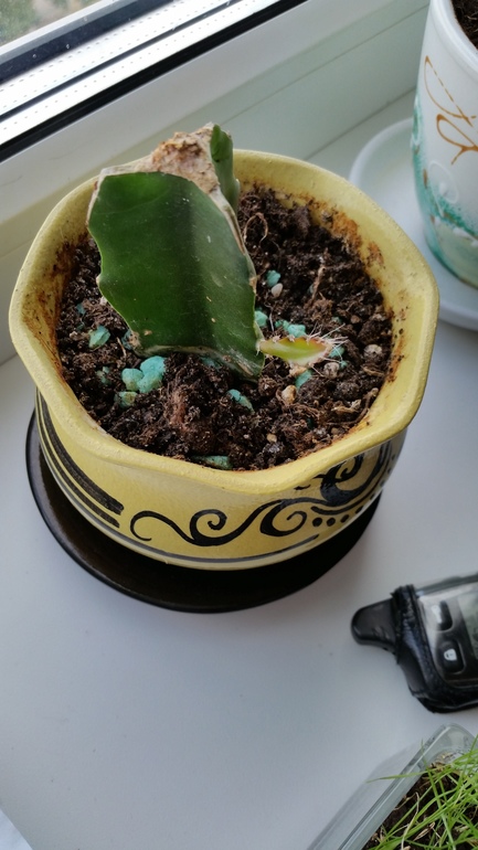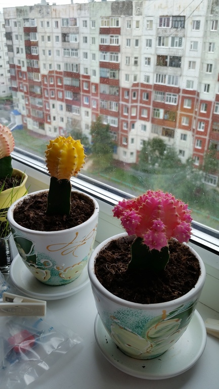 у того который бледно розовый (видимо из-за того что я его перелила) начала гнить эта розовая верхушка и я её срезала. И сразу после этого у кактуса начал расти отросток