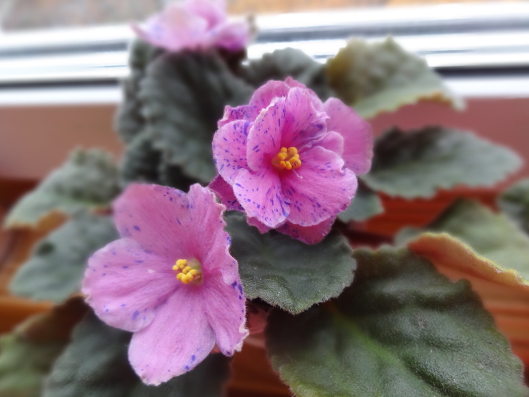 Удивила стандартная фиалочка-безымяшка, обычно она всегда цвела простыми розовыми анютками с фиолетовыми брызгами, а тут выдала махровые цветы. Химеры - они такие непредсказуемые. )))