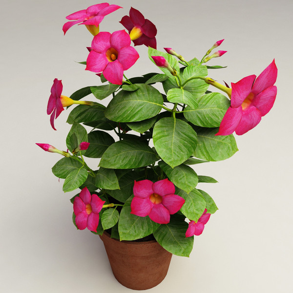 Дипладения-ближайшая родственница адениума, но без каудекса. Плетущееся растение, отращивает длинные усы, из междоузлий цветет. Здоровое взрослое растение цветет с весны по осень. Не скажу, что вот прям сорняк в уходе и такая легкая на цветение, но и не самое сложное растение. У меня их 6 разных сортов, все выращиваю из маленьких черенков. Полив по мере просыхания верхнего слоя почвы, подкормка в весенне-летний период, нуждаются в опоре, "ноги", то бишь корневая, должны быть в тепле.