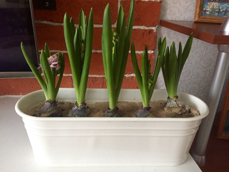ХвастушкиВ конце октября посадила луковицы, держала в холодильнике. 1 января достала уже такие прилично проросшими. На 27 день после переноса в тепло первый цветок начинает зацветать. Интересно, 14 февраля будем с цветами, или уже отцветут?..
