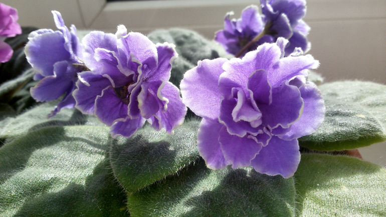 Эта фиалка раньше цвела белым цветом, а теперь у нее появились сиреневые пятна.