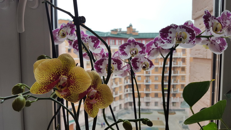Красивые какие, веснушчатые 😊 Фиолетовая в одном горшке столько стебельков?
