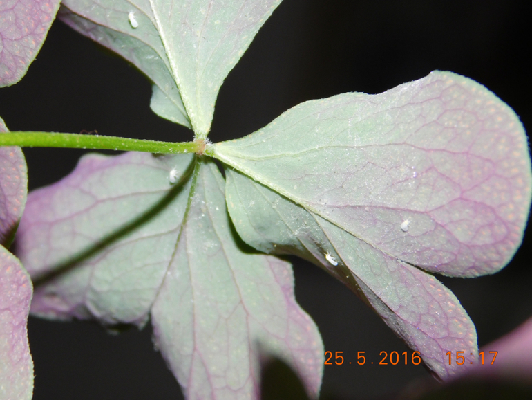 Сегодня на свекровином оксалисе нашла жителей.. Белые мошки и под листиками может яйца или личинки.. Помогите опознать, чем лечить. фото под кат.