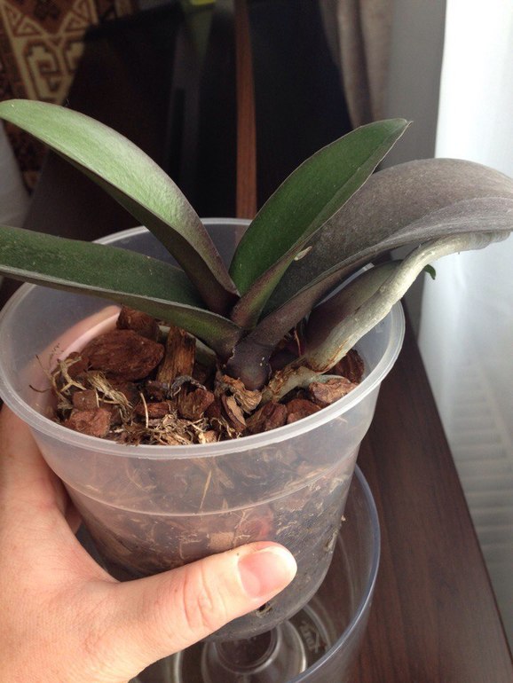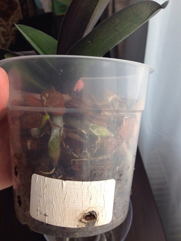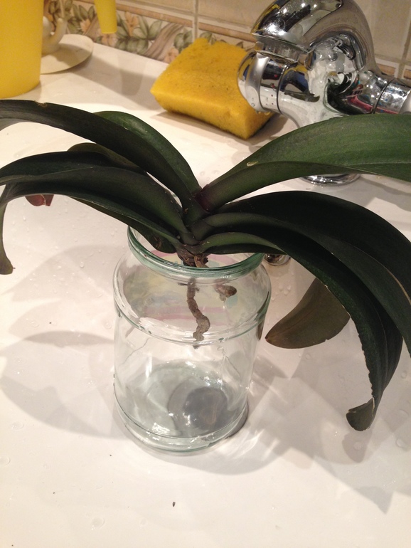 14 мая я тут писала пост о том, что моя орха помирает. У нее не осталось ни одного живого корня. Срезала все. На фото есть пара гнилушных корешков, но и их и попку я в итоге отрезала.